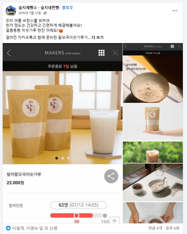 | 브랜딩 | 무포장 판매, 간판 없음 | 슬지제빵소 브랜드 확립, 패키지 디자인 |